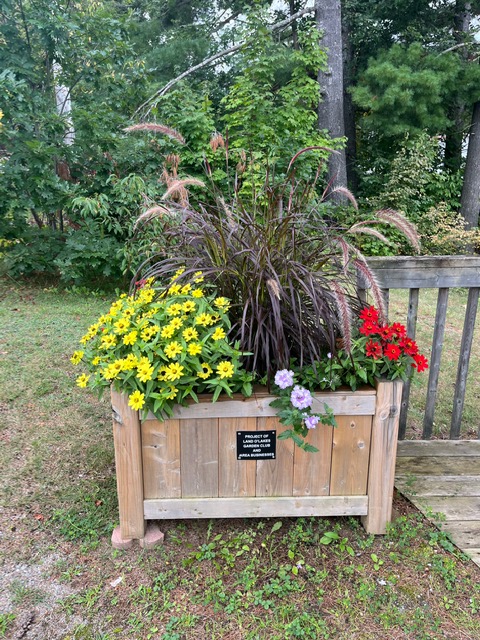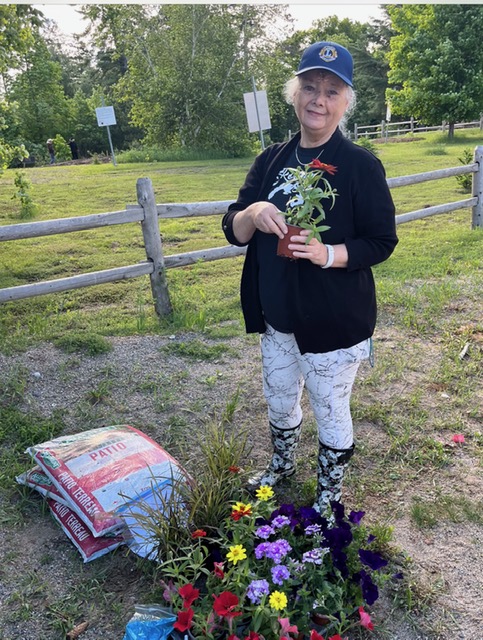 She was asked over a decade ago by a former garden club member if she would mind “keeping an eye on it” and watering it as needed. So she has done this because she enjoys seeing the beautiful flowers that thrive due to her daily attention. And she enjoys talking to the people who launch their boats. She also knows most of the year-round and seasonal residents on the road.