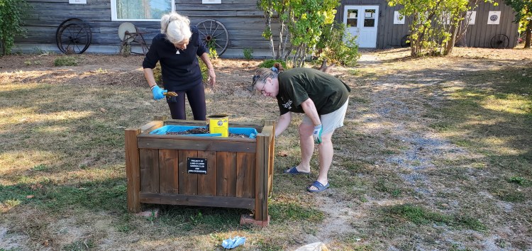 A small, dedicated group of members braved the sweltering heat of early October to stain the 34 planter boxes that are placed throughout our community at participating businesses and Township properties.