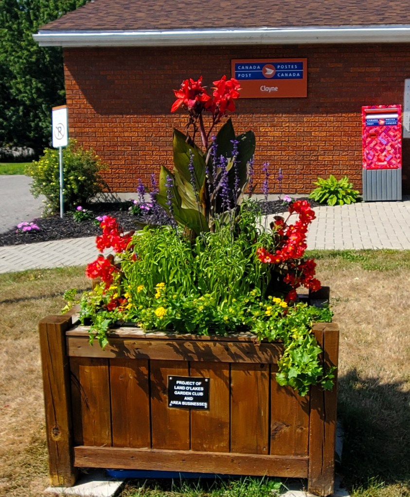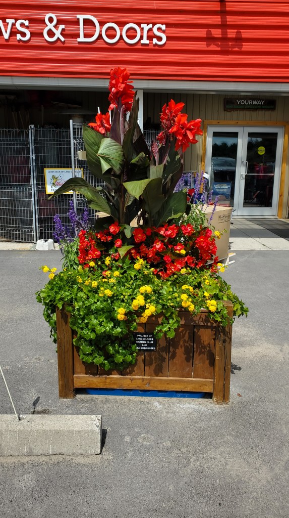 In particular, we would like to put the spotlight on the planters at Yourway Northbrook Home Hardware. Brad has continued to water the boxes nightly with “lukewarm water”. The Canna lilies soar above our heads and the plants are abundant with colourful blooms. Well done Brad!! We are awarding you first prize (we’ve never made such acknowledgments before but we felt compelled to do so now)